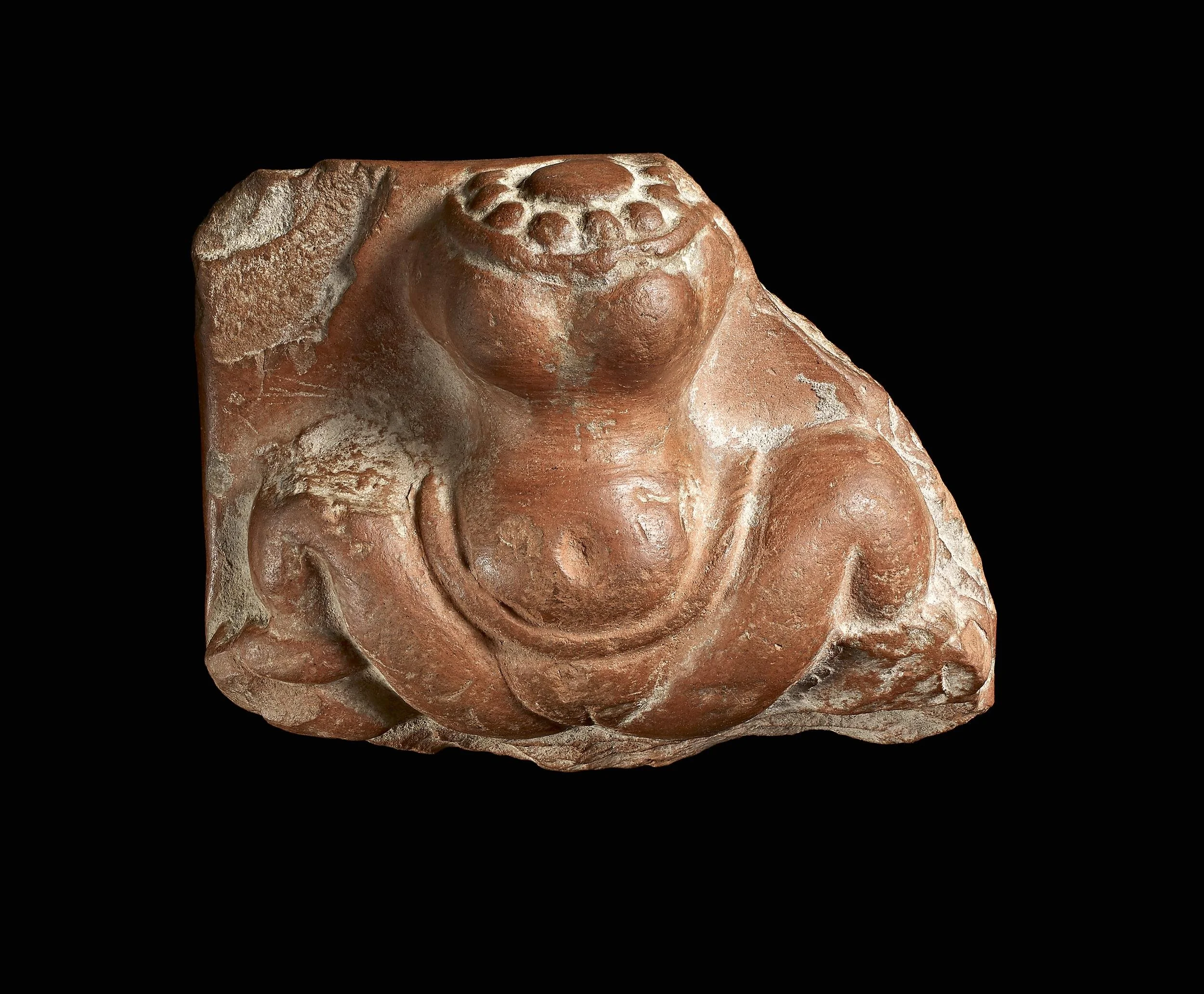 During the 1930’s, Anglo-Indian archaeologist Margaret Alice Murray categorised the ‘female fertility figures’ into three distinct groups. These types were the Universal Mother or Isis type, The Divine woman or Ishtar type, or the Personified Yoni or Baubo type. Most of the artefacts discovered in South Asia depicting female figures fall under one of these categories. Refusing the designation of Mother Goddess, Carol Radcliff Bolon established in her research that the Lajja Gauri as the fundamental origin of all life and the manifestation of all creative power.